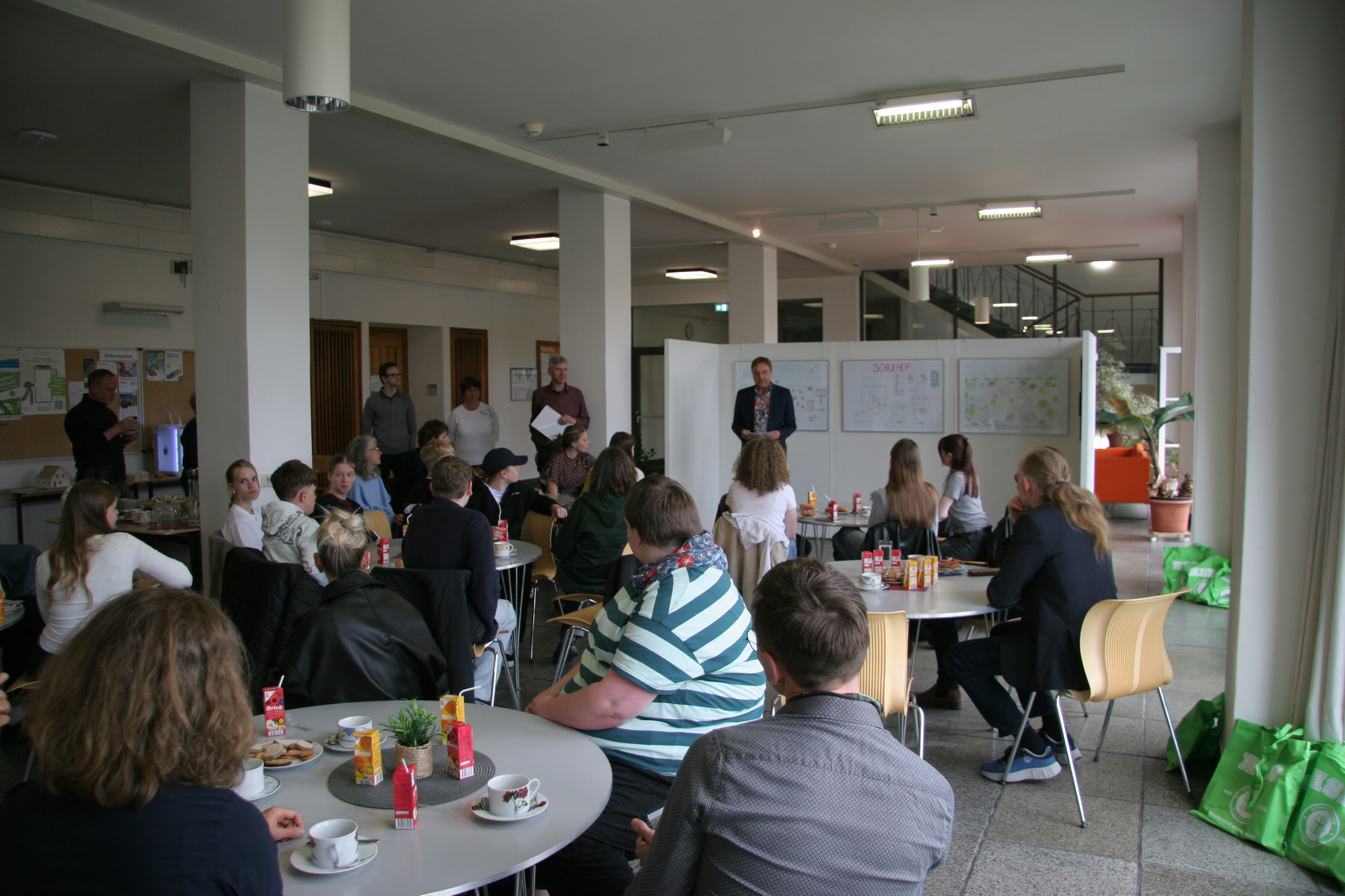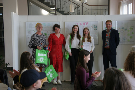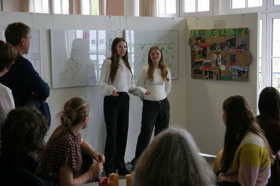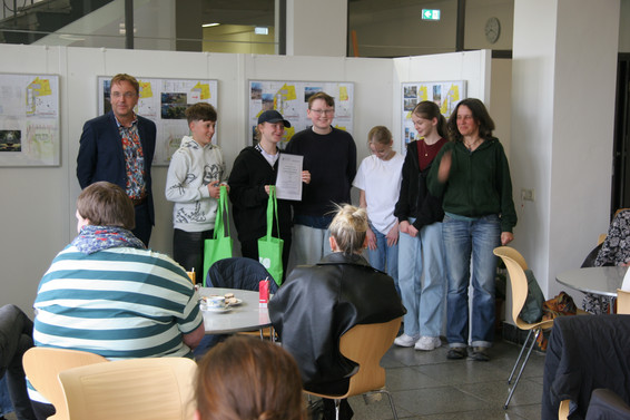 Schülerinnen und Schüler präsentieren Ideen zur Schulhofgestaltung unter Beachtung des Klimawandels