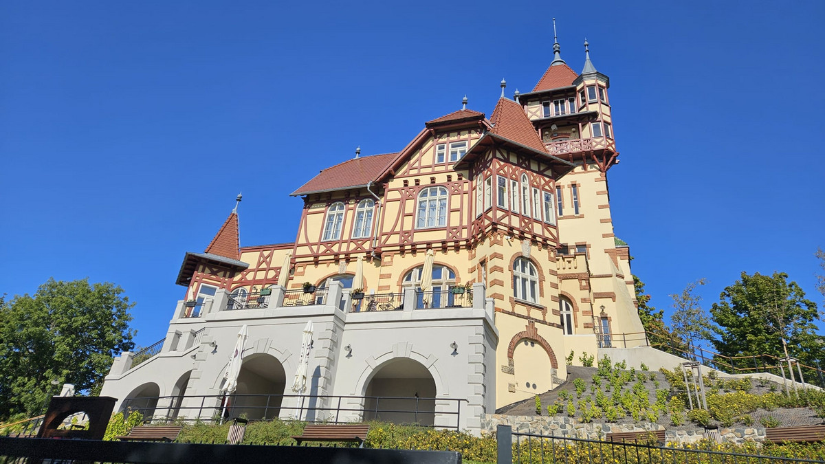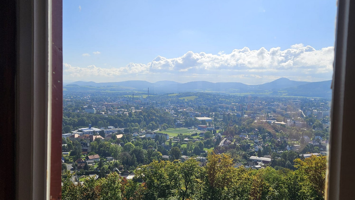 Unser nächstes Ziel war der Burgsberg. Dort beeindruckte uns nicht nur die schöne Villa mit Restaurant, sondern auch der Turm, von dem aus wir einen herrlichen Rundblick über Deutschland und Tschechien hatten. Zur Stärkung legten wir anschließend in einer Gaststätte eine kurze Pause für ein erfrischendes Getränk ein.